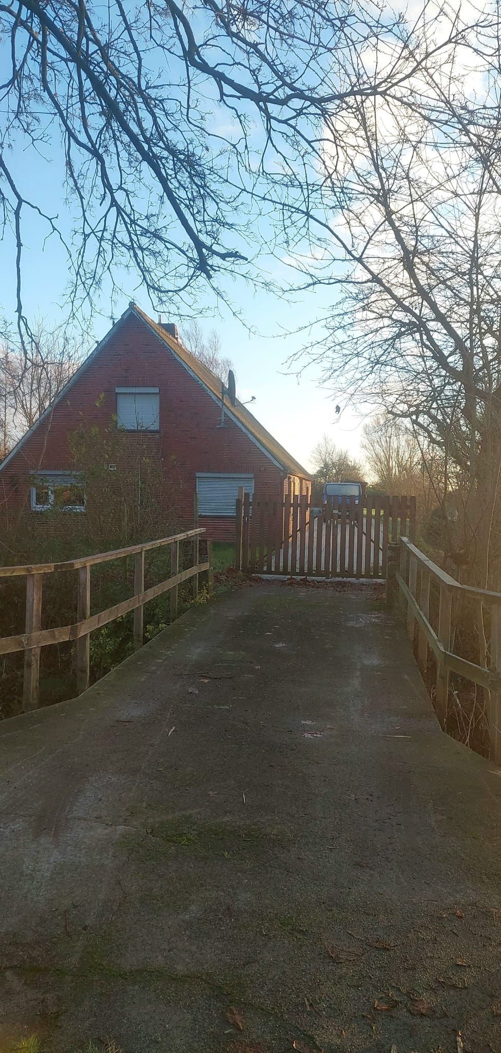 Der Garten ist mit einem 1,50m hohhen Zaun komplett eingezäunt und mit einem großen Holztor kommt man auf das Grunstück.